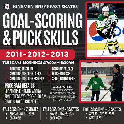 Players will focus on puck control, shooting in stride, and creating offense under pressure. This structured program emphasizes quick release, catch-and-shoot ability, and scoring through screens—helping players develop precision and consistency in goal-scoring situations.