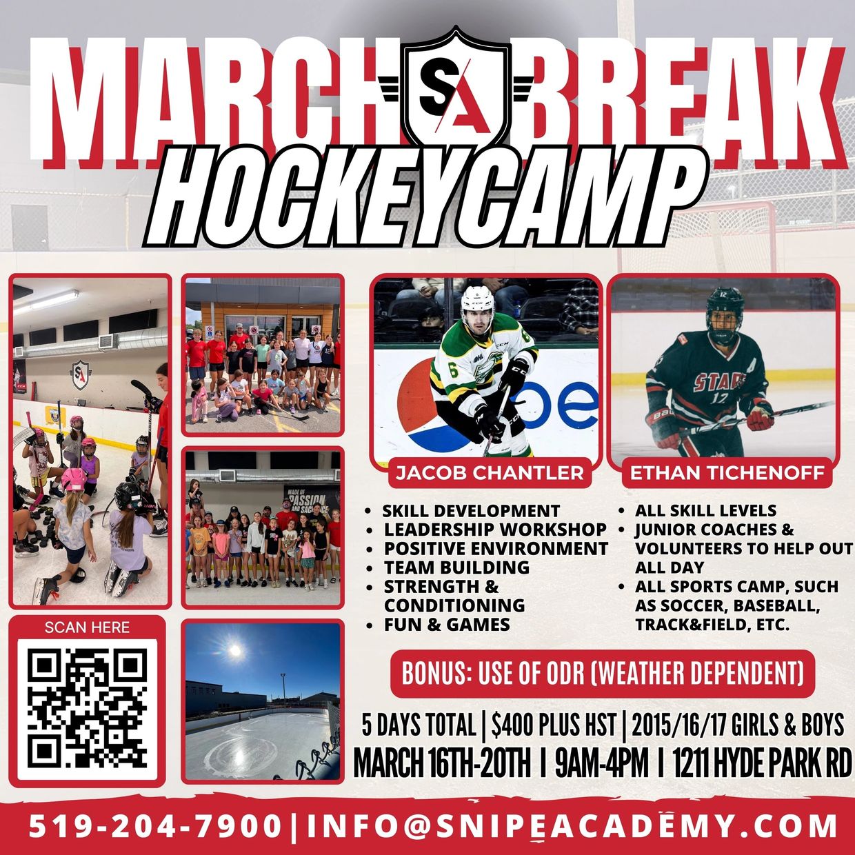 We’re excited to announce our 2026 March Break Hockey Camp at Snipe Academy! Led by experienced coaches Jacob Chantler & Ethan Tichenoff, this camp offers a fun, safe, and welcoming environment for players of all skill levels. Athletes will develop key hockey skills—including shooting, passing, stick handling, agility, and strength—while also building confidence, leadership, and teamwork through games and team activities.
